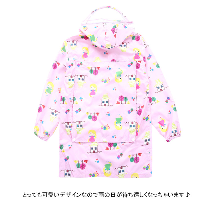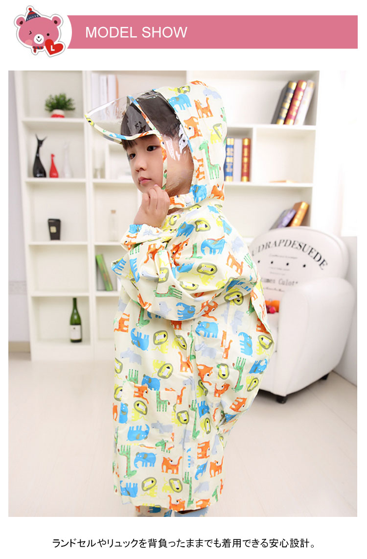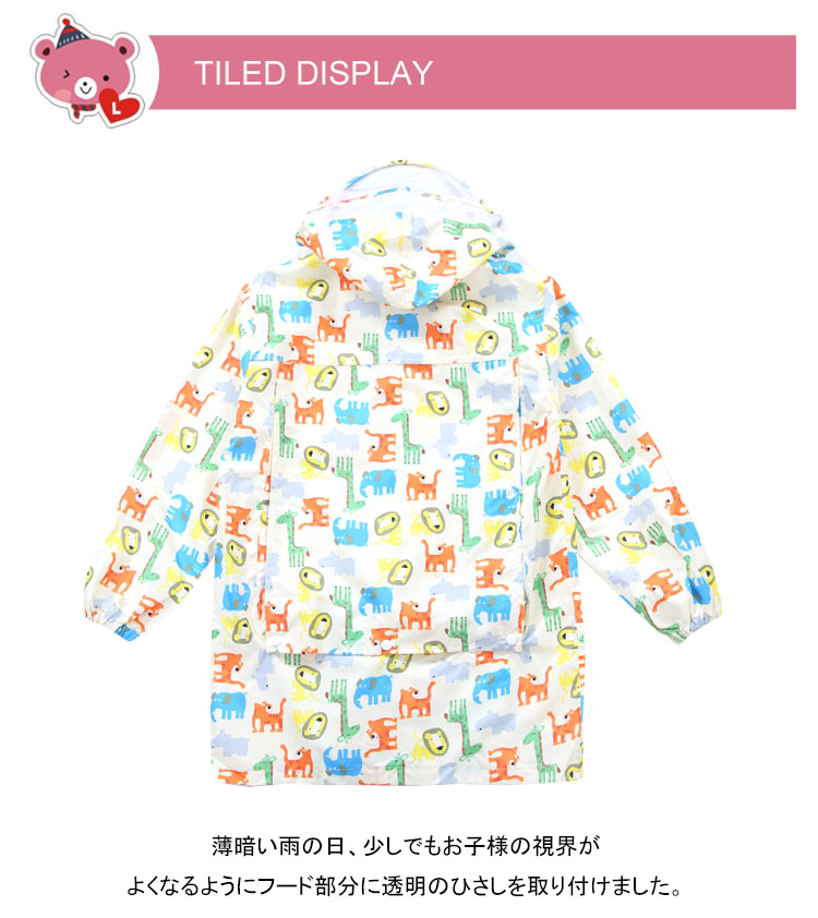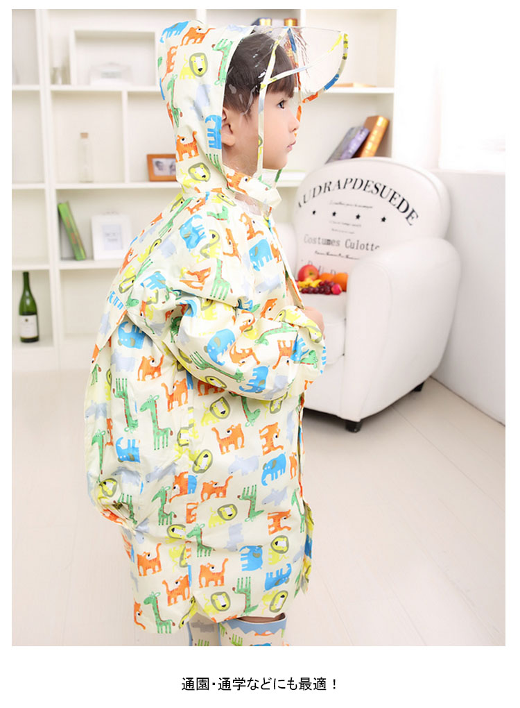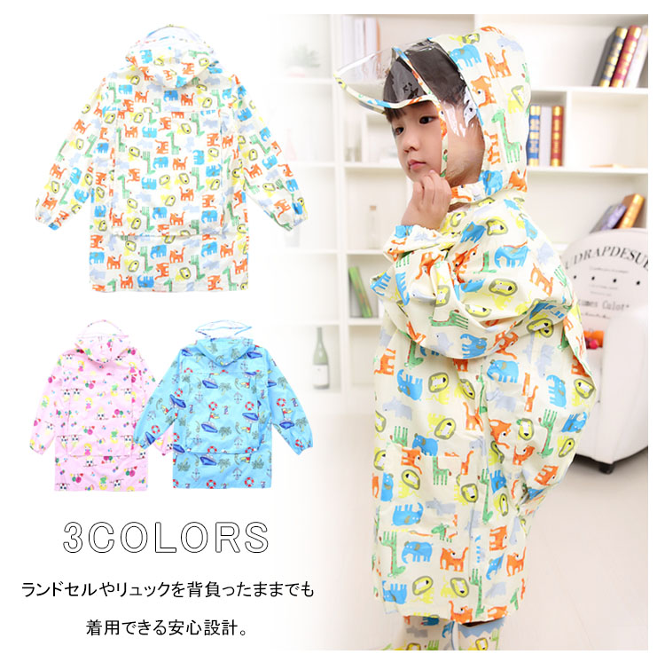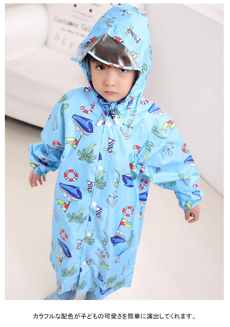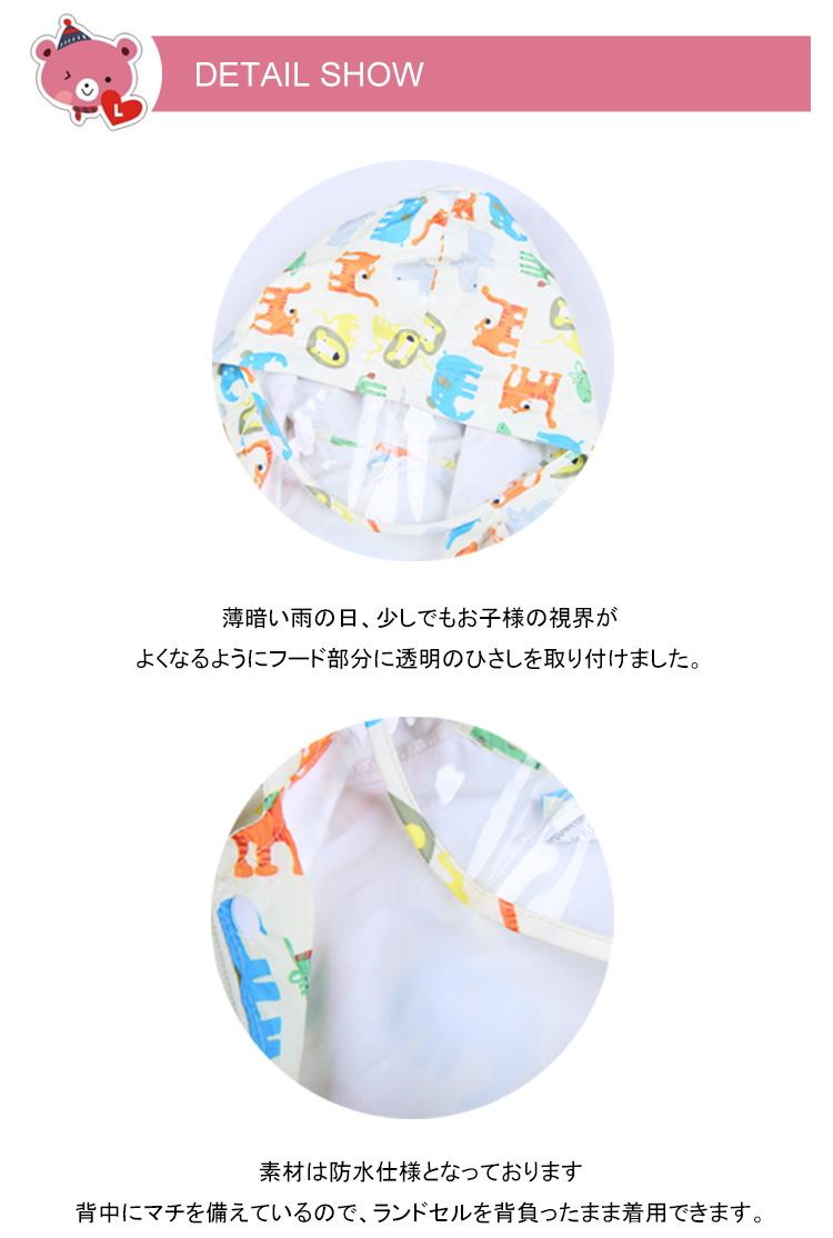 | ランドセルやリュックを背負ったままでも着用できる安心設計。通園・通学などにも最適!カラフルな配色が子どもの可愛さを簡単に演出してくれます。薄暗い雨の日、少しでもお子様の視界がよくなるようにフード部分に透明のひさしを取り付けました。ロング丈なので長靴の中に水が入るのを防いでくれます。とっても可愛いデザインなので雨の日が待ち遠しくなっちゃいます♪ | |