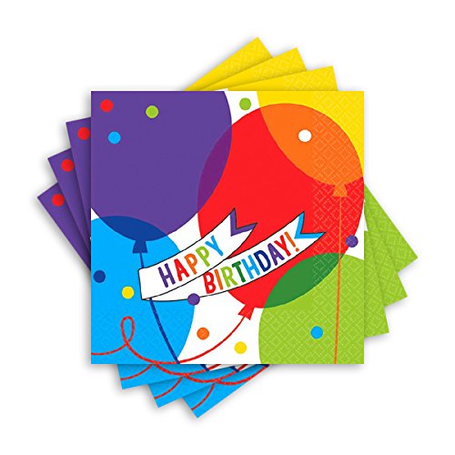 Bright Balloons Birthday Party Beverage Napkins Tableware, Paper, 5" x 5", Pack of 36