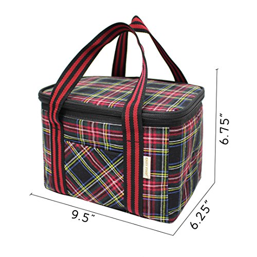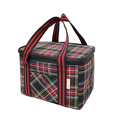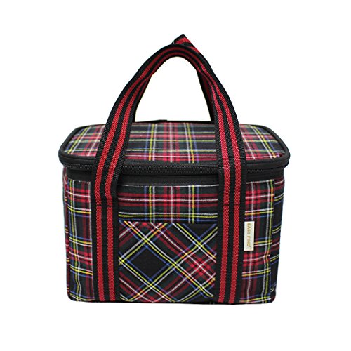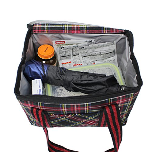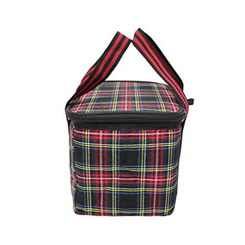 La moriposa New Grid Insulated Lunch Bag Folding Grocery Bags For Hiking Camping (Red and black grid)