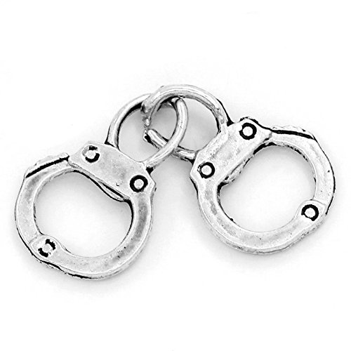 PEPPERLONELY Brand 30PC Antique Silver Charm Pendants Handcuffs 5/8 x 4/8 Inch