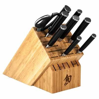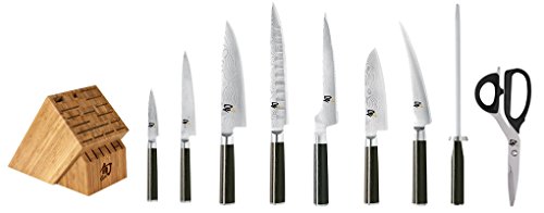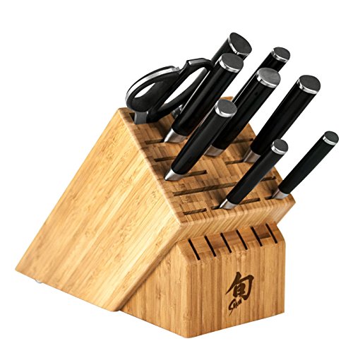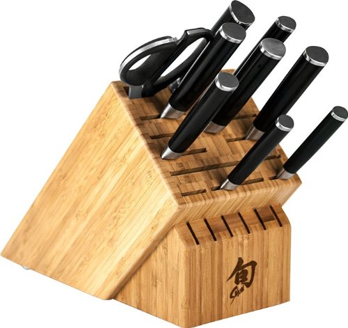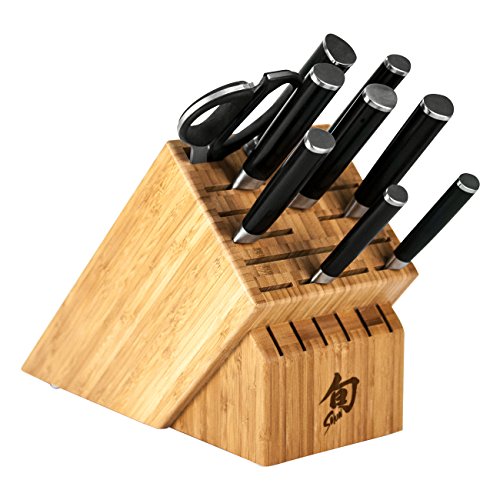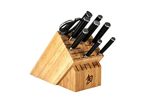 Studio : Kershaw Publisher : Kershaw Binding : Kitchen Product Description Great Chef's need the perfect knife for any job and the Shun Classic Chef's 10 Piece Knife Block set does not disappoint. The set features 7 popular Shun Classic Knife Styles, including, a 3.5" Paring Knife, 6" Utility Knife, 8" Chef's Knife, 9" Hollow-Ground Slicer Knife, 8 1/4" Offset Bread Knife, 5.5" Santoku Knife and a 6" Boning/Filet Knife. Additionally, the set includes one Honing Steel to hone blades between professional sharpening, herb shears and a Shun 22-Slot Bamboo Block to hold it all beautifully, within easy reach. Shun Classic knife blades are made with solid VG10 super steel and feature a razor-sharp 16 degree cutting angle on each side. The ebony D-Shape PakkaWood handles have that sleek, sophisticated look that makes these knives feel more like art, than instrument and are specifically designed for premium applications. The specially shaped handles rest perfectly in the curve of the fingers, for a more secure grip while handles remain moisture resistant. The bolster is ground out more on the right side for proper finger placement, as well as balancing the knives perfectly. Precision blades and handle engineering mean long-lasting use and comfort-no matter how large or small you kitchen prep may be. Crafted in Seki City Japan, our Shun Classics are forged in the tradition of samurai sword making. These heirloom quality knives will be a prized treasure you'll want to pass down to family for generations. 0