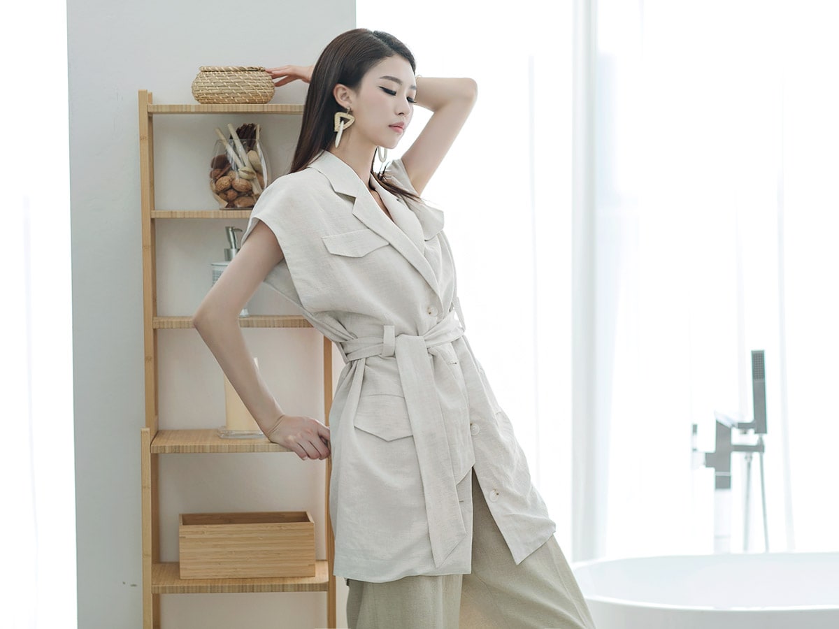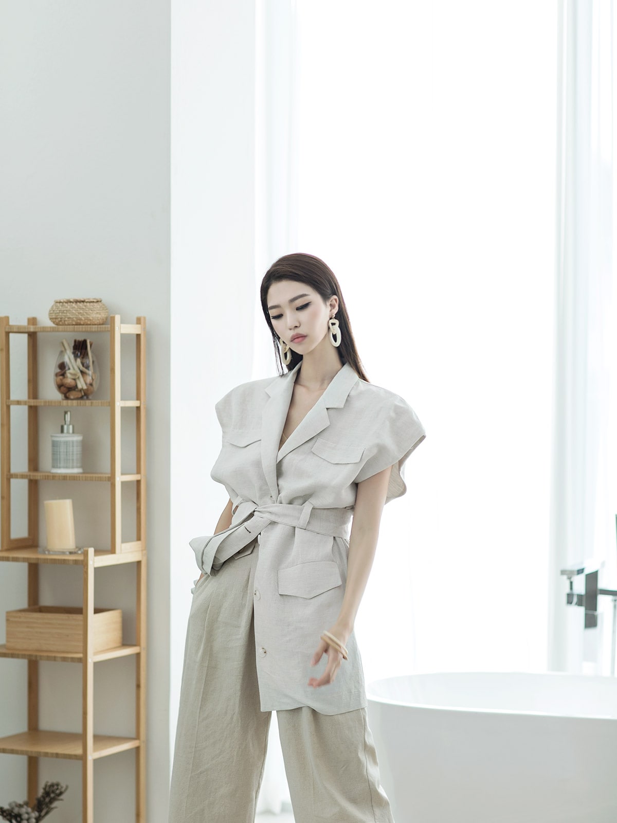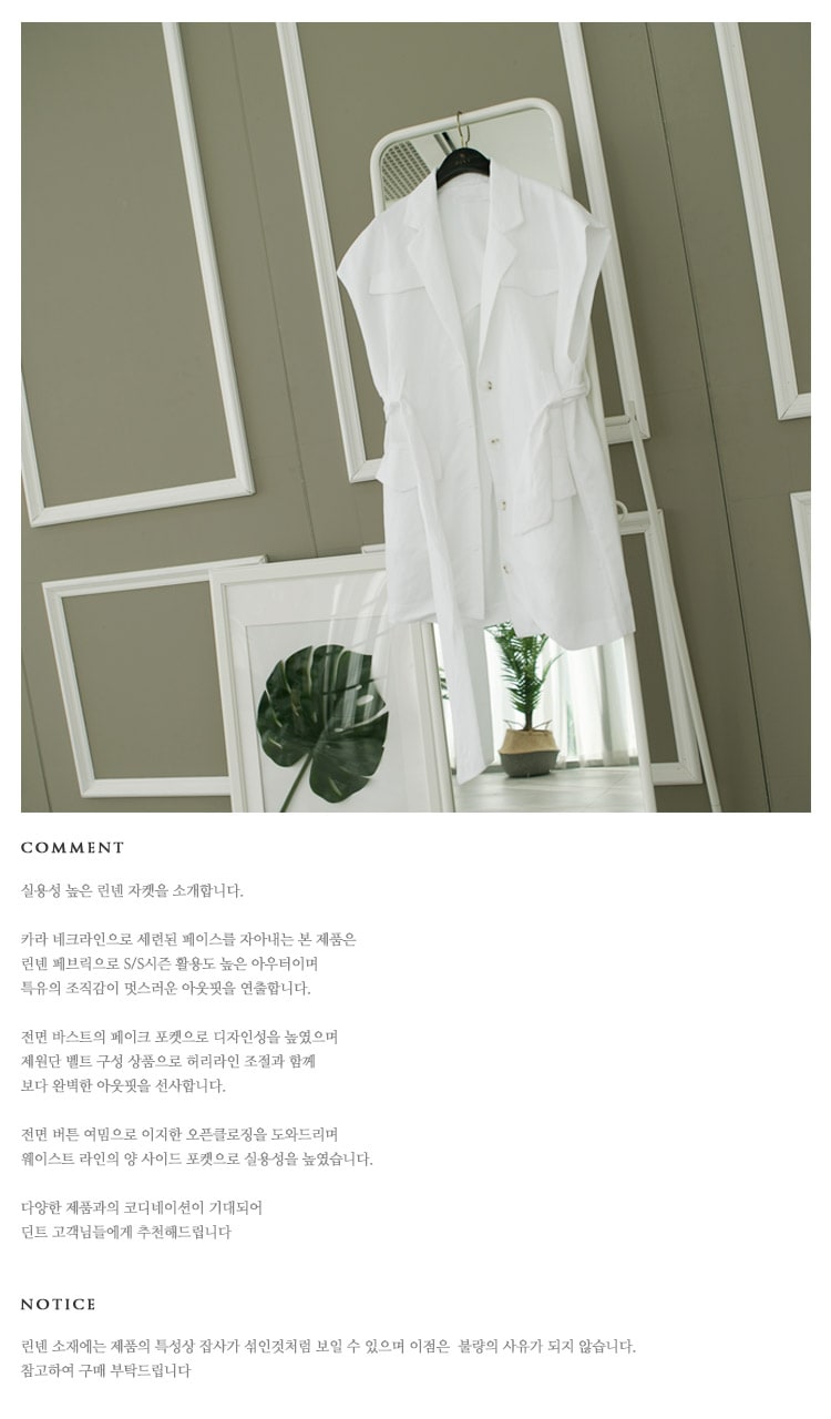 J-4979 무드 모어 포켓 린넨 자켓(벨트set) Beige