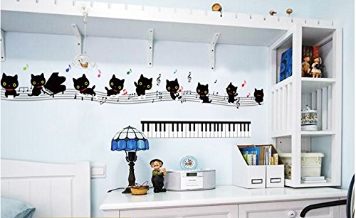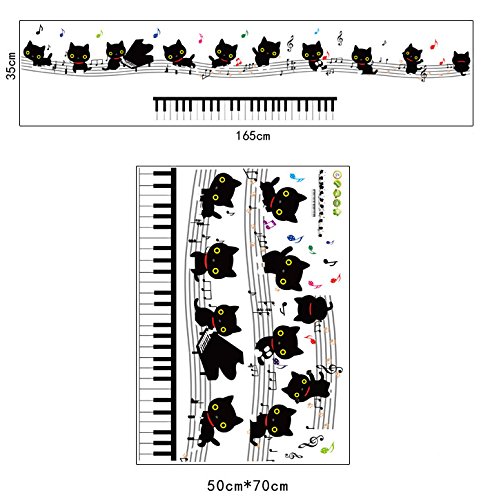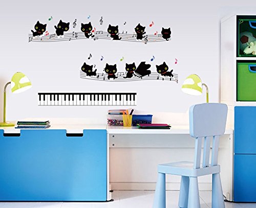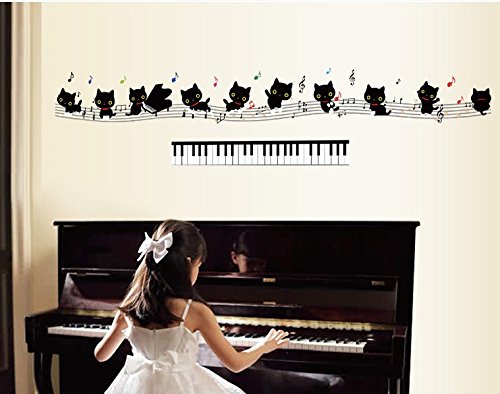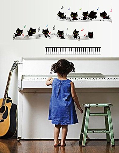 TOTOMO #W158 Piano Cat Wall Decals Removable Wall Decor Decorative Painting Supplies & Wall Treatments Stickers for Girls Kids Living Room Bedroom