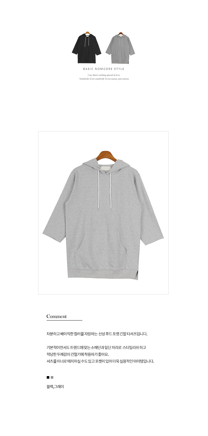 ▣상품설명 : 차분하고 베이직한 컬러를 자랑하는 신상 후드 포켓 긴팔 티셔츠입니다. 기본적이면서도 트렌드에 맞는 소매단과 밑단 처리로 스타일리쉬 하고 적당한 두께감이 간절기에 착용하기 좋아요. 셔츠를 이너로 매치하실 수도 있고 포켓이 있어 더욱 실용적인 아이템입니다.