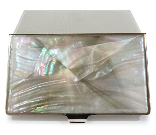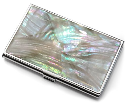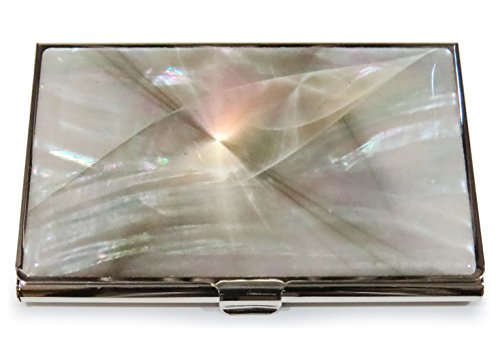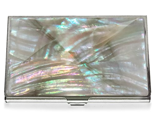 Business Credit Card Case Id Holder Metal Travel Wallet Mother of Pearl Beige Silver Fractal