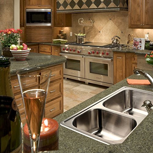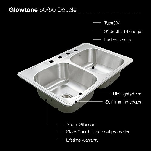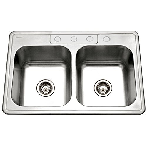 Houzer 3322-9BS4-1 Glowtone Double Bowl Drop-In Stainless Steel Sink, 33-by-22-by-9-Inch