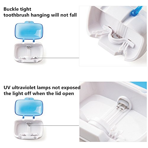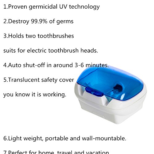 - ❤-CONVENIENT & EASY TO USE: Toothbrush sanitizer and holder all in one. After you brush, simply place a toothbrush, electric head or battery operated toothbrush in the UV sanitizer and auto start when door is closed and shut off after 3 minutes cycle and serve as a toothbrush holder keeping your toothbrushes and electric heads clean until their next use