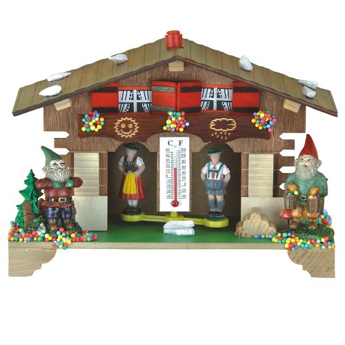 - Colour: Coloured Height: 14 cm/5.6 inch The weather house is made of wood. This is how a weather house works: There is a gut string inside, which reacts to all changes in the air humidity. Depending on whether the air is dry or humid, the gut string changes its position and twists more or less, so that the female turns outside when it is dry and the male, when it is humid.