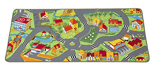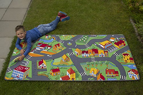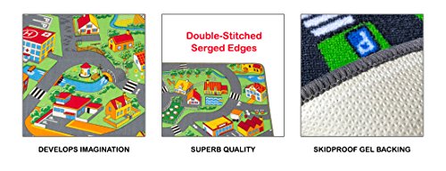 Superb quality, beautiful road design and colorful play carpet. Able to Withstand rugged wear. Exclusive durable all around serging. Made from 100% polypropylene. Durable latex gel skid backing. Meets all safety requirements for children. Our attention to the design, details and durability translate into a lifetime of precious childhood memories.