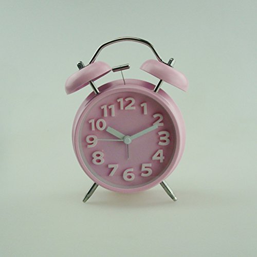 Package Including 1 * 4-Inch Double Bell Alarm Clock with Stereoscopic Dial Backlight Battery Operated Loud Alarm Clock (Pink) 0