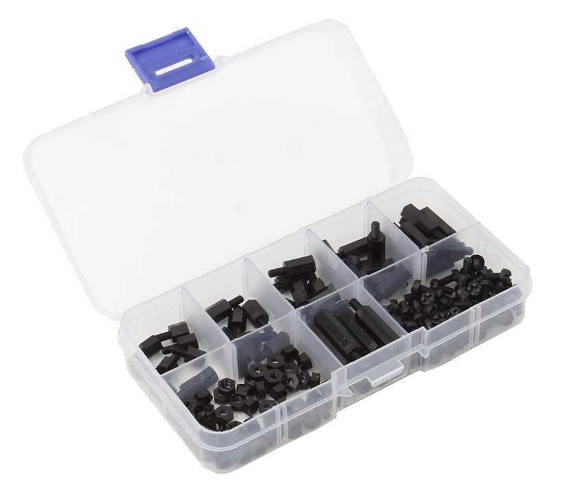 ・セット内容:収納ケース×1、M3ネジ×60、M3ネジナット×60、M3ネジスペーサー×60個(6mm、8mm、10mm、12mm、15mm、20mm×各10個)、六角レンチ×1(付属品)