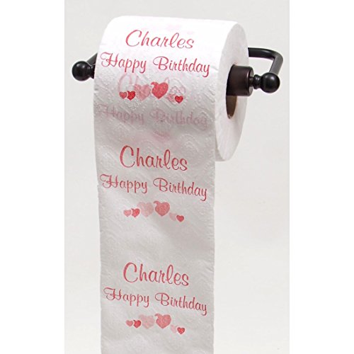 Studio : JustPaperRoses Publisher : JustPaperRoses Product Description Happy Birthday toilet paper in your choice of 25 male names. We also have 25 female names listed separately. Here we have Andrew, Bill, Charles, Christopher, Dan, Daniel, David, George, James, Jim, Joe, John, Joseph, Joshua, Justin, Mark, Matthew, Michael, Mike, Paul, Richard, Robert, Thomas, Tom, and William 0