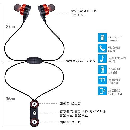 -. Feature : ネックバンド式:イヤホンを首に回し、左右のイヤホンが自動的にくっついて、脱落や紛失などのことは心配がありません。 / 快適なフィット感のデザイン:耳に荷重がなくなるため、軽快のそのものです。通勤、運転などの場合に、使い心地が良いです。 / Bluetooth 4.0バージョンを用いて、より簡単、速くスマホ、タブレットなどBluetooth対応のミュージックデバイスと接続できます。 / 快適な着装感!カナルタイプイヤホンを用いて、より良く耳にフィットでき、長時間付けて頂けます。 / イヤー部分にリモコン·マイクを搭載しており通話も可能です。