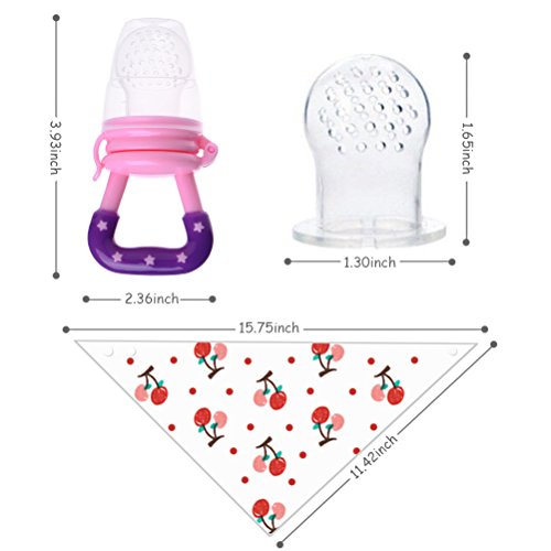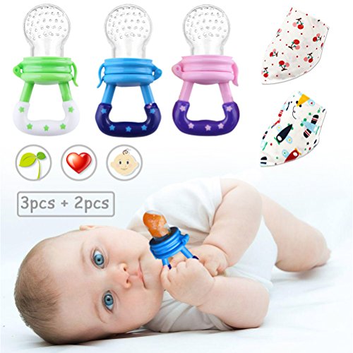 Baby Food Feeder,Sportsvoutdoors 3-Pack Fresh Fruit Feeder,Infant Fruit Teething Toy,with 2-Pack Baby Drool Bibs,for Toddlers & Kids