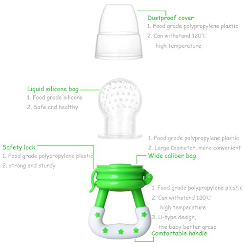 - SAFETY FEEDER-- Made from the highest food grade silicone which is BPA Free, Lead Free, Petroleum Free, Latex Free and Phthalates Free, It is a safe way to start introducing baby to solid food as your child goes through the teething phase.so it is safe for baby to nibble and munch on.