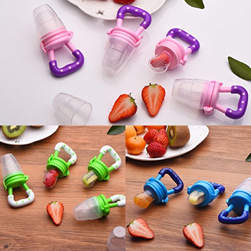 - UNIQUE DESIGN -- These baby fruit suckers are engineered to allow only the tiniest of food pieces to go through to prevent choking. It is a safe way to start introducing baby to solid food as your child goes through the teething phase. It is also designed with textured surfaces and soft chewable silicone that ease teething discomfort.
