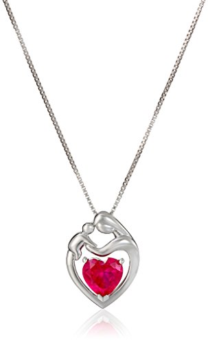 -. Feature : Sterling silver necklace featuring mother and child pendant with heart-shape gemstone centerpiece / Box chain with sP.R.Ing-ring clasp / Imported