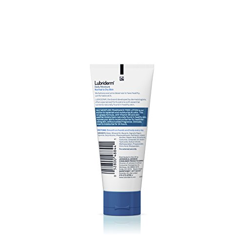 Studio : Lubriderm Publisher : Lubriderm Binding : Health and Beauty Product Description Ideal for normal-to-dry skin types, Lubriderm Daily Moisture Fragrance-Free Lotion replenishes and helps moisturize dry skin. From a dermatologist-developed brand, this moisturizer lotion for body skin is clinically proven to moisturize for a full 24 hours. It is fortified with vitamin B5 and essential moisturizers and helps improve your skin's moisture barrier. It is fragrance-free and has a non-greasy formula, for a pleasant, soft, and smooth feel to the skin. 0