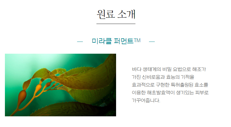 | 지친 피부를 생기있고 탄력있게 케어하세요 피부를 매끄럽게 감싸주는 고보습, 고영양 해조 발효 농축 세럼 미라클 퍼먼트™ 해조효소 발효액 리리코스 미라클 퍼먼트™ 성분을 다량 함유하여 지친 피부를 생기 있게 가꿔주고 피부 힘을 키워줍니다. 촉촉한 보호막 촉촉한 보호막으로 피부의 수분 유지력을 강화시켜 줍니다. 미백&주름 개선 도톰하고 농축된 질감으로 실크처럼 부드럽게 펴발려 피부를 매끄럽게 감싸주고, 미백과 주름개선 이중 기능성 성분으로 기미, 잡티를 개선하고 피부에 자연스러운 윤기를 선사합니다. |