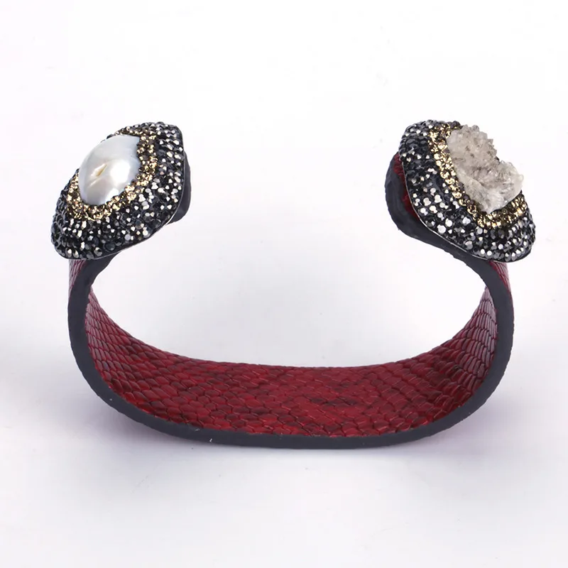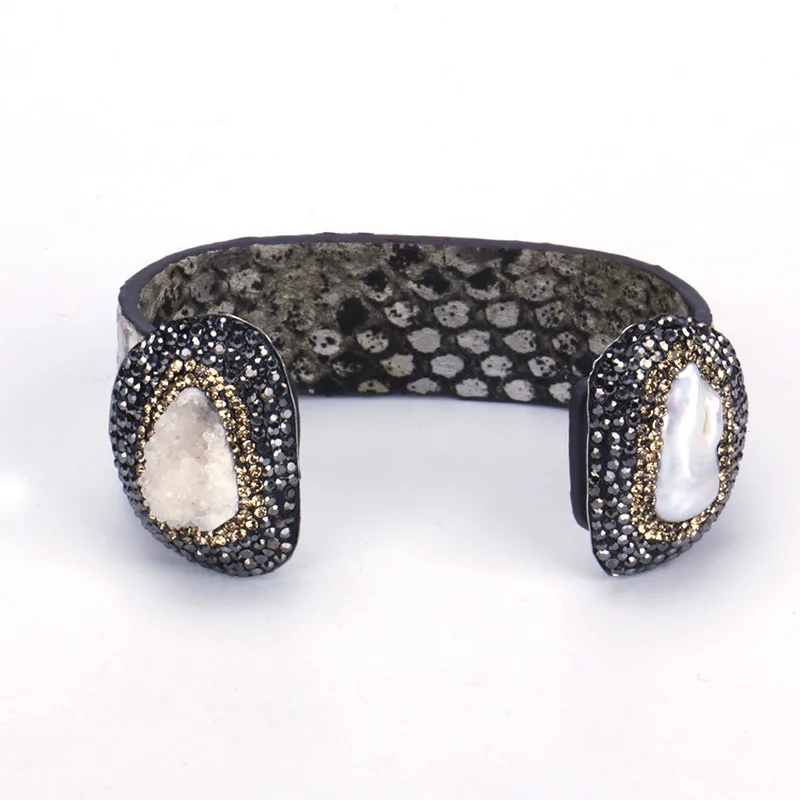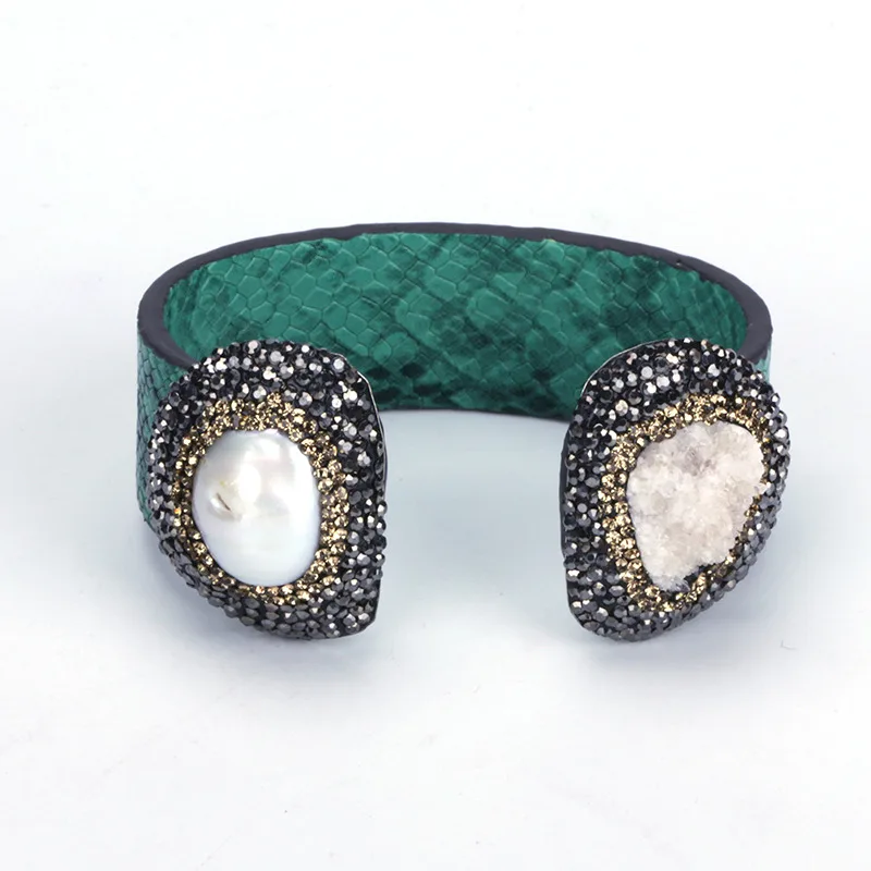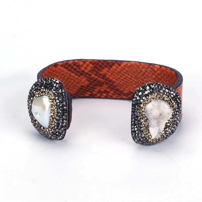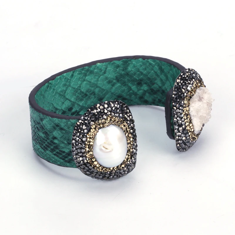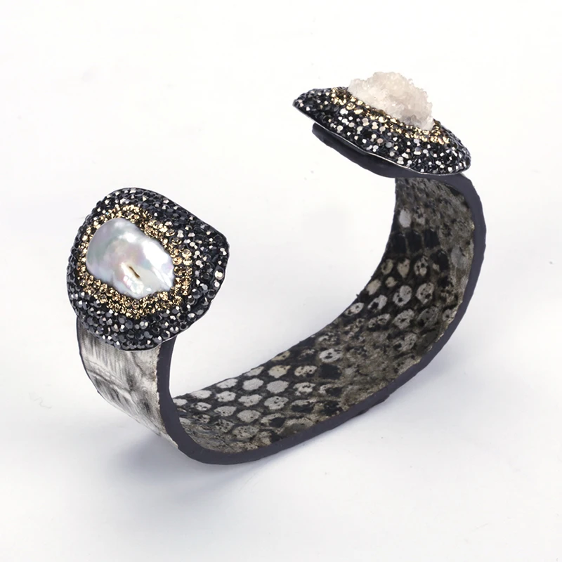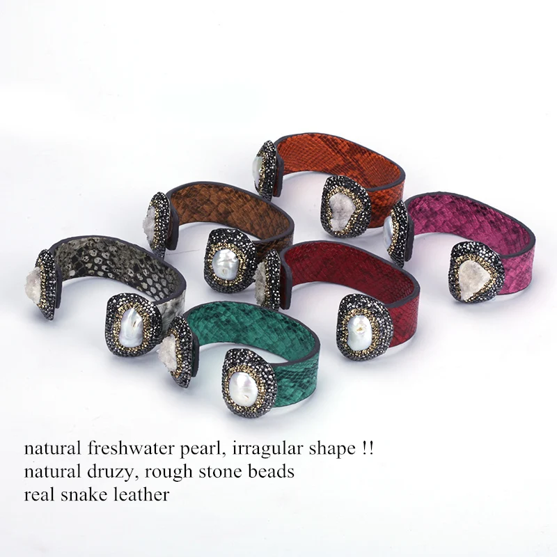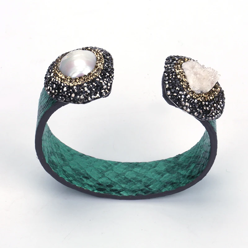 material for the bangle:real snake leather,black and gold rhinestone