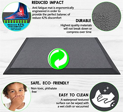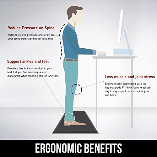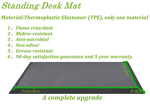 - THE BEST COMFORT MAT YOU WILL EVER OWN:Every standing desk needs a good mat, Our Anti-fatigue mats are ideal as a standing desk mats and provide comfort for people working at a stand up desk all day or spending long hours on their feet,Comfortable, extra thick ergonomically designed 4/5" high density core for long-lasting support,24"x18" to fit easily into most offices.