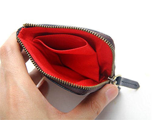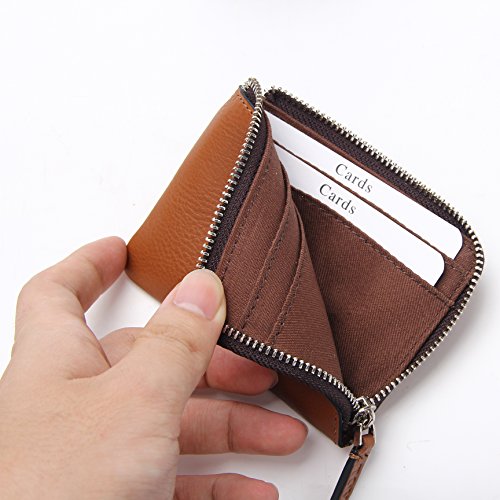 -. Feature : Soft vegetable tanned leather with fabric interior / Elegant half-zip wallet - Classy slim wallet with great quality to carry everywhere / 4 Card Slots- Holds 8 to 10 Cards / Spacious for cash and coins / 10cm x 7cm x 1cm