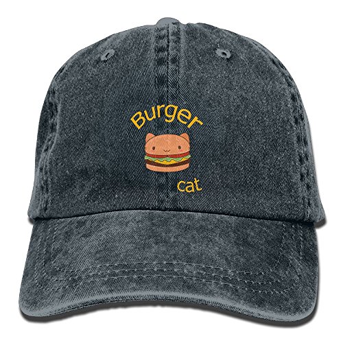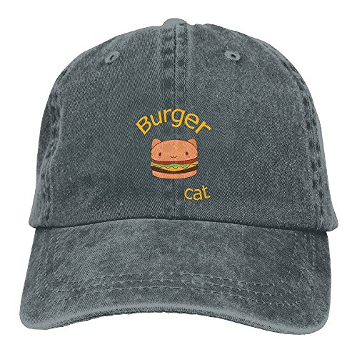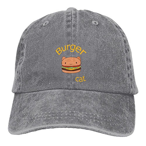 (Uzhongquux)/Accessories/Hats/DIRECT FROM USA/Uzhongquux Burger Cat Unisex Cotton Denim Baseball Cap Adjustable Strap Low Profile Plain Hats Ash