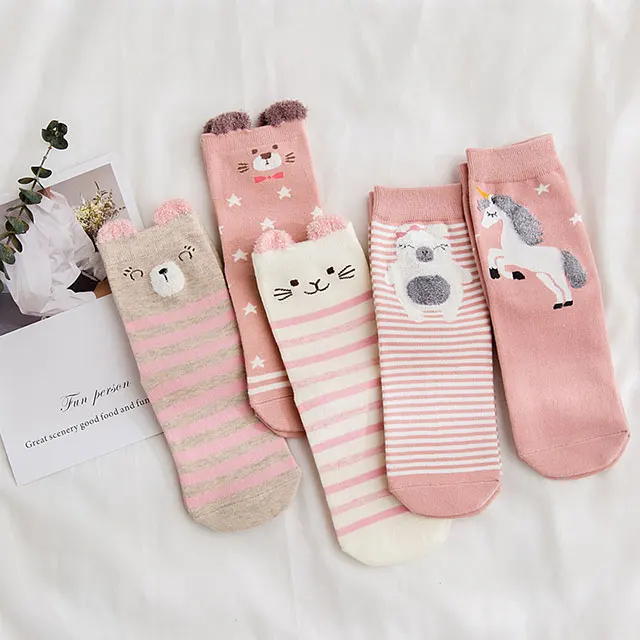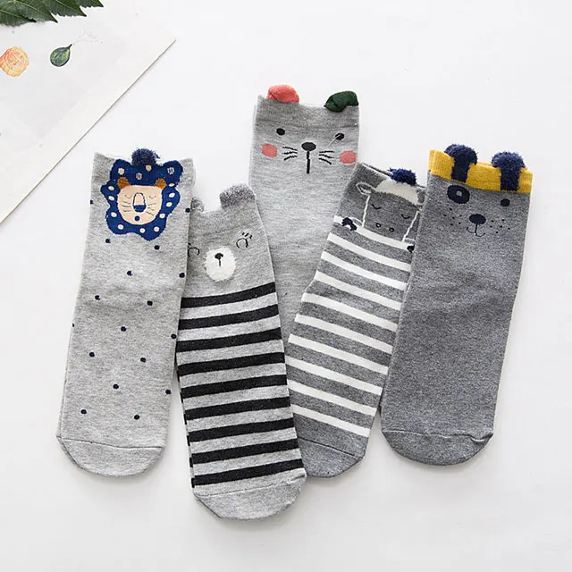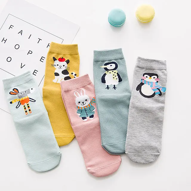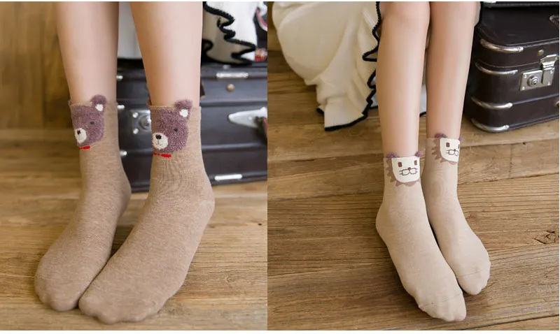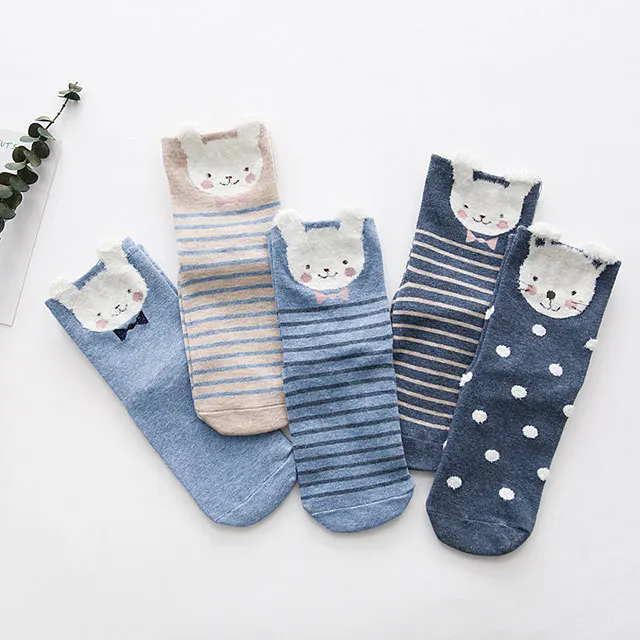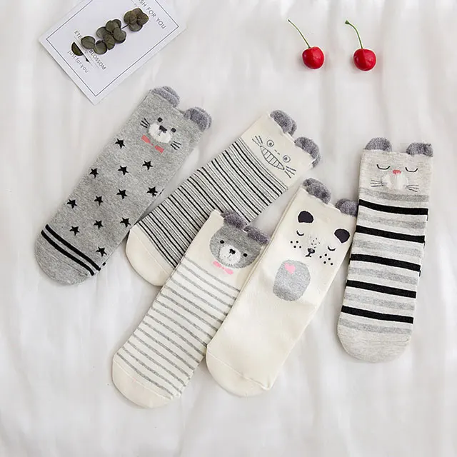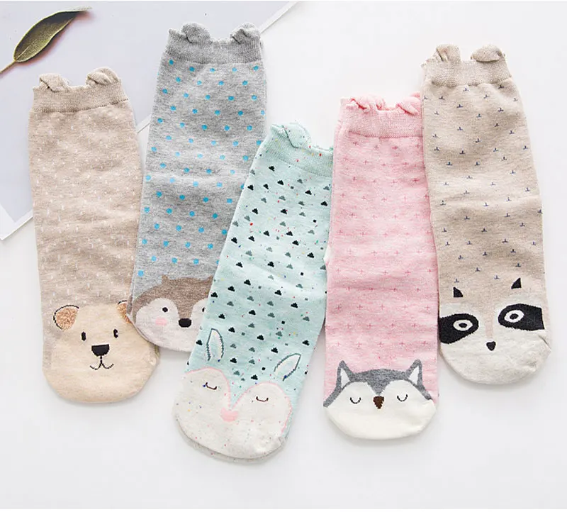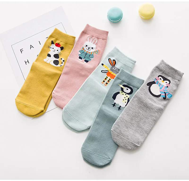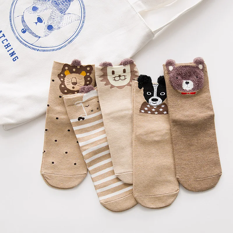 Name:5Pairs/Set Design Cute Cotton Jacquard Animals Socks Women Footprint C