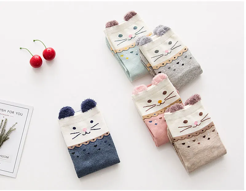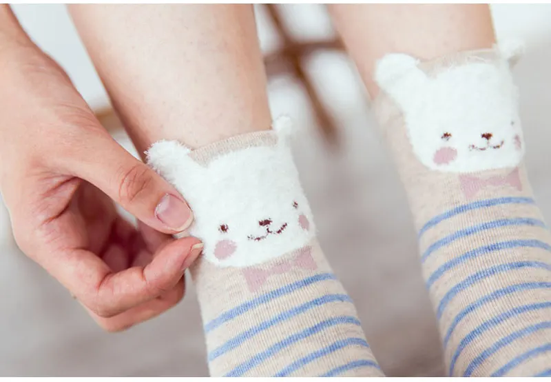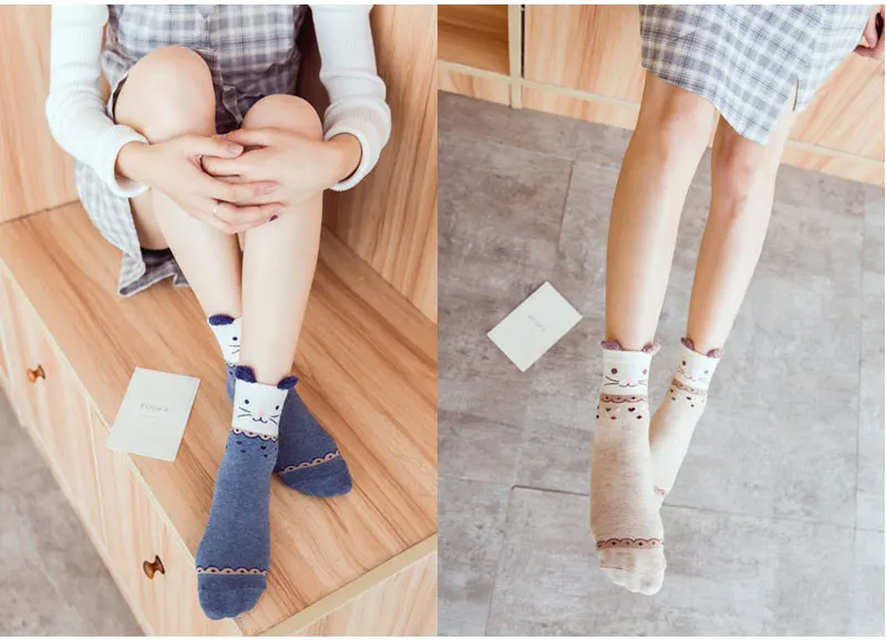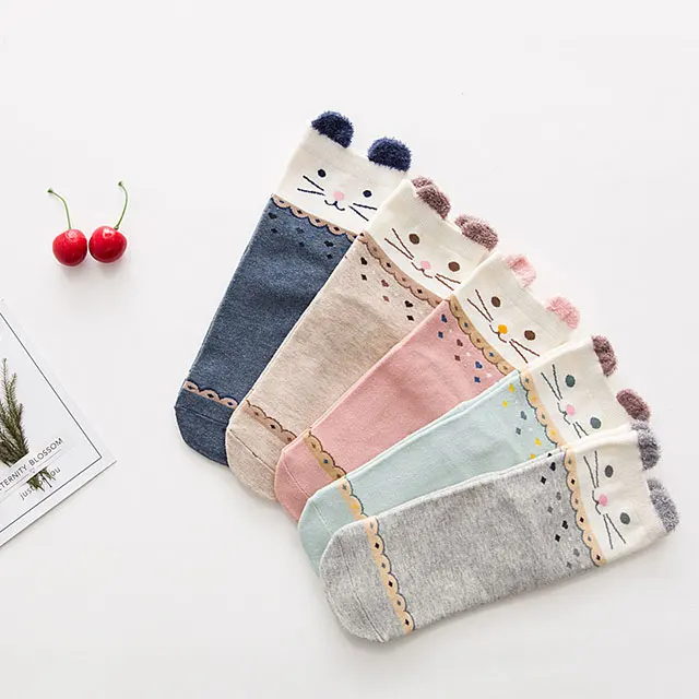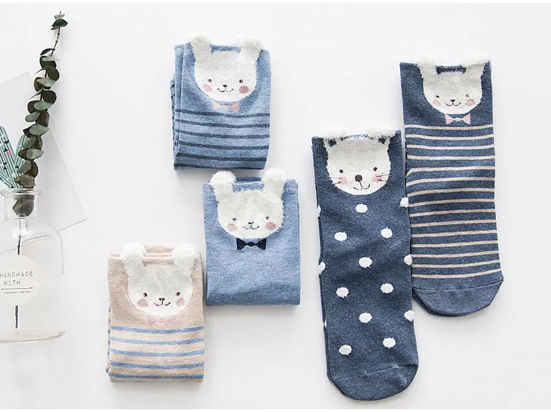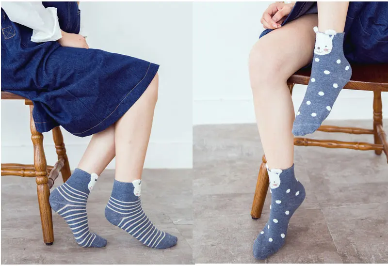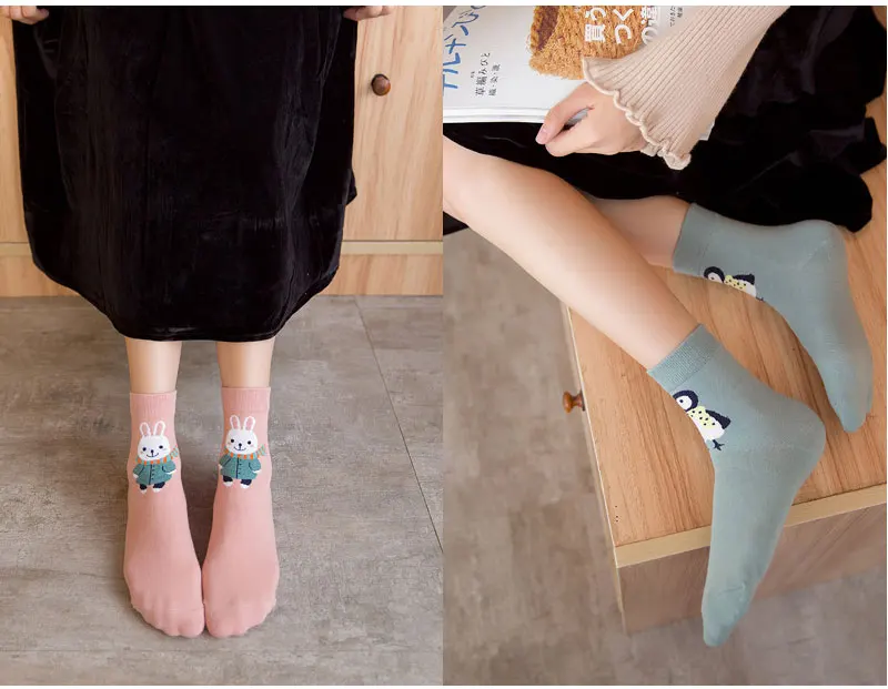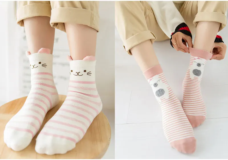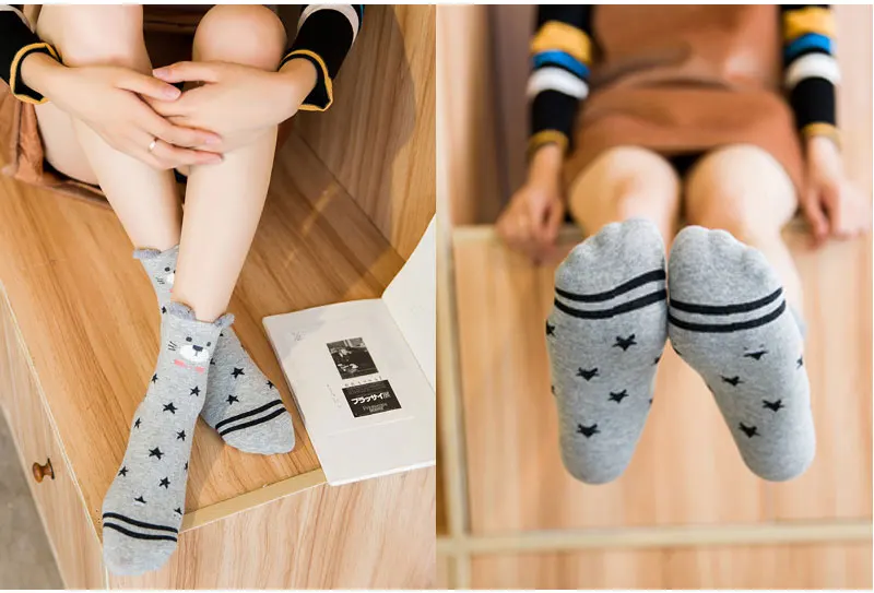 Name:5Pairs/Set Design Cute Cotton Jacquard Animals Socks Women Footprint C