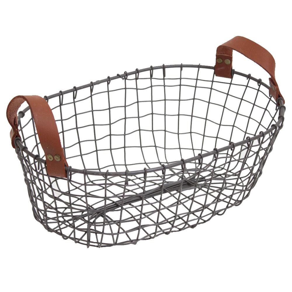 おしゃれな収納かごとして使えます。小物を入れたり、インテリアにもおすすめ です♪ 製造国:中国 素材・材質:ワイヤー 商品サイズ:W39×D26×H14cm(持ち手含まず) 重量:804g ※サプライヤー直送品 ご注文後2~3営業日後の出荷となります【商品名】ワイヤーバスケット皮手楕円 5217