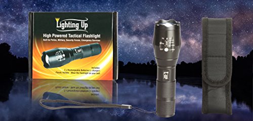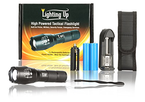 * L-Up Tactical Flashlight Torch kit includes: Powerful Professional Grade Tactical LED Flashlight + 1 High Quality Rechargeable Lithium Ion Battery + 1 Spare Rechargeable Lithium Ion Battery + 1 Battery Charger + 1 Holster Carry Pouch + plus one AA battery holder (Ideal As A Gift)