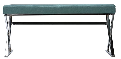 -. Title : Cortesi Home Zio Contemporary Metal Entryway X- Bench in Sea Breeze Blue Fabric