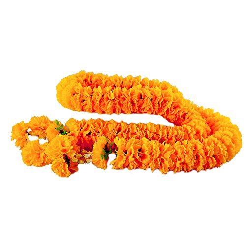 - The Artificial Yellow Marigold garlands are presented and worn at many festive and happy occasions, such as graduations, birthdays and weddings, for good luck, garlands would be given to the spirit house or to be placed reverently at the base of the Buddha images in the family shrine. This garland used grade A Fabric and plastic as a material and hand made.
