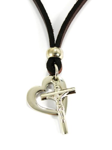 -. Title : BrownBeans, Teens Womens Casual Fashion Heart Lover Cross Pendant Leather Necklace (LNKT1017)