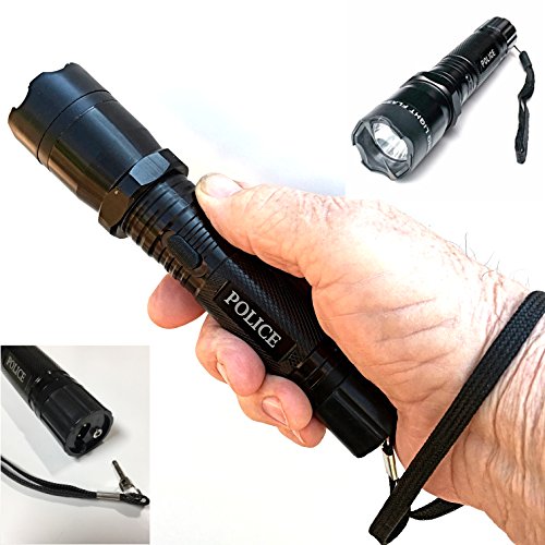 - Police Stun Flashlight Type III aircraft grade aluminum alloy body with anti-roll design, 100,000 hour bulb