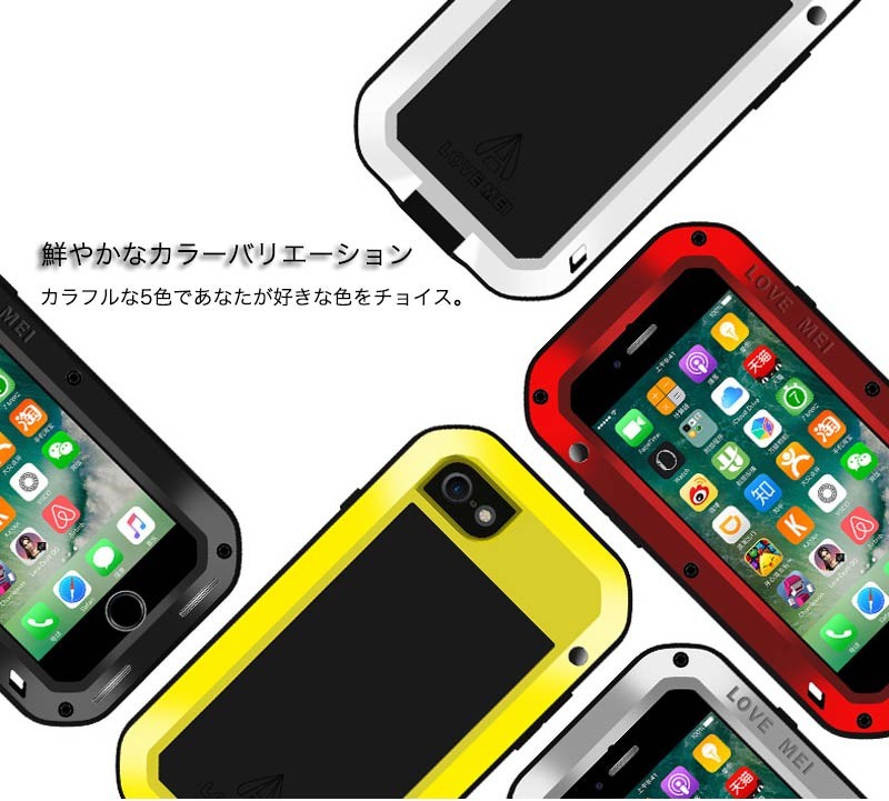 ★「対応機種」iPhone8(アイフォン8)、iPhone7(アイフォン7)、iPhone8 Plus(アイフォン8 プラス)、iPhone7 Plus(アイフォン7 プラス)★「カラー」ゴールド(金)、シルバー(銀)、ブラック(黒)、ホワイト(白)、レッド(赤)、イエロー(黄)★「商品特徴」LOVE MEI アウトドア向けのメタル合金ケース全面保護できる、衝撃吸収、頑丈、防塵、メタル合金ケース更に ゴリラガラスフィルムも付き、防御力いっそうアップ!★「キーワード」アイホン8 アイホン8プラス アイホン7 アイホン7プラス ケース おしゃれ 耐衝撃 ケース オシャレ メタル合金製 全面保護 衝撃吸収 頑丈 防塵 シンプル スマホケース ゴリラガラスフィルム付き 軍用型 おしゃれ 耐衝撃 合金ケース オシャレ
