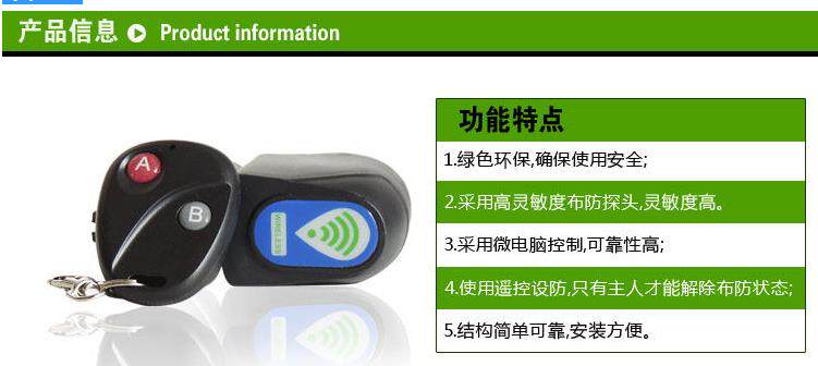 Convenience! We generally use U-lock lock car spend an average of more than 5 seconds, but also to drive so much time. But also bent over! Sometimes we just go away for a while, such as buying a pack of cigarettes, go to WC, really do not want to lock your car. With this alarm, as long as we stretched it, change passwords, press the button on the fixed up!