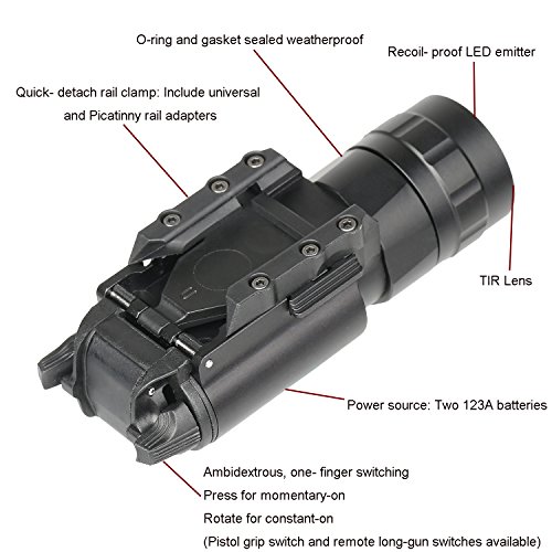 Gohiking Tactical Flashlight 500 Lumen Gree LED Light Small Tactical Light with Picatinny Rail Sealed Weatherproof Black