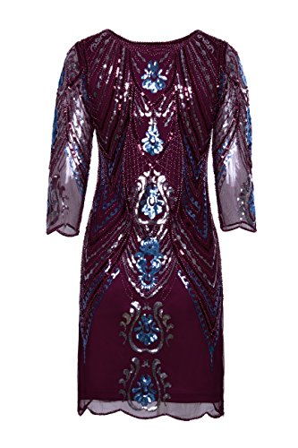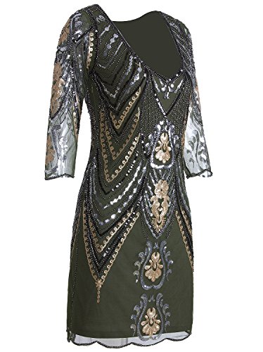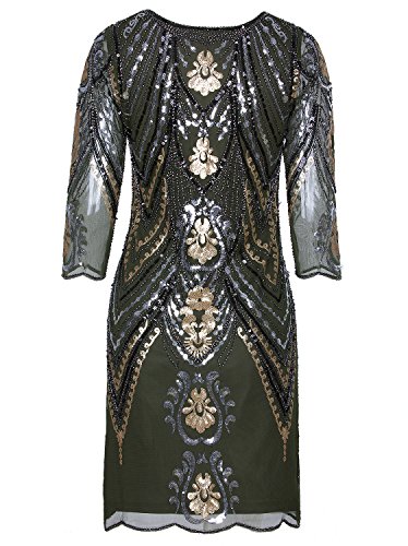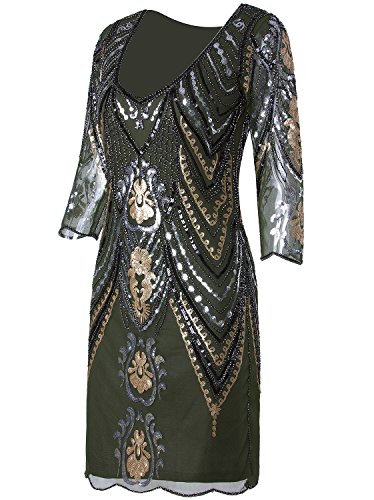 Vijiv 1920s Flapper Dress With 3/4 Sleeve V Neck Squins Cocktail Gatsby Dresses