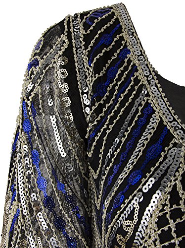 Vijiv 1920s Flapper Dress With 3/4 Sleeve V Neck Squins Cocktail Gatsby Dresses, Black Blue, Large