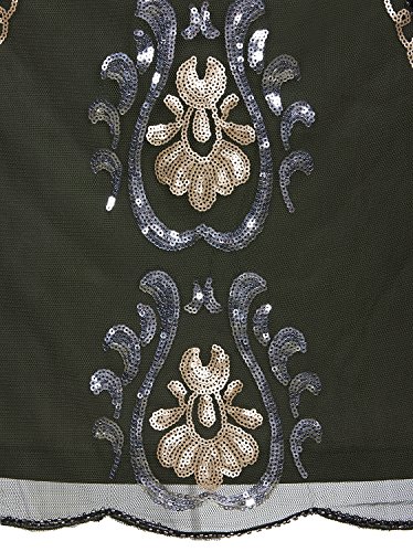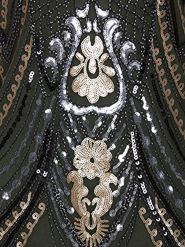 Vijiv 1920s Flapper Dress With 3/4 Sleeve V Neck Squins Cocktail Gatsby Dresses, X-Large, Black Silver