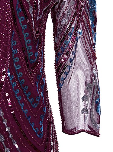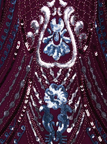 Vijiv 1920s Flapper Dress With 3/4 Sleeve V Neck Squins Cocktail Gatsby Dresses,Red,Small