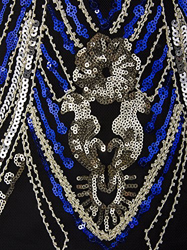 Vijiv 1920s Flapper Dress With 3/4 Sleeve V Neck Squins Cocktail Gatsby Dresses, Black Blue, Medium