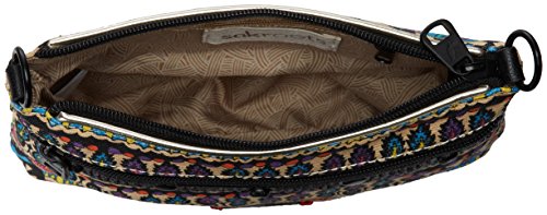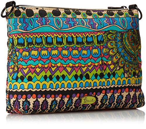 The Sakroots Artist Circle Campus Mini bag is made from durable canvas fabric and features a colorful allover print with an adjustable, detachable strap that can be carried over the shoulder, slung across the body, or removed for use as a chic handheld clutch. This small bag features a zip top closure and a fully lined interior that offers ample storage for your day to day essentials. The interior includes a back wall zipper pocket and two slip pockets while the exterior features a front zipper pocket for added storage.