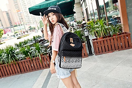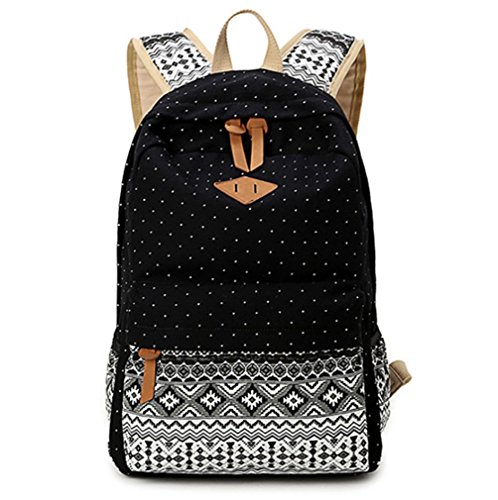-. Title : Zamango Fashion Cute Round Dot Casual Canvas Backpack Black