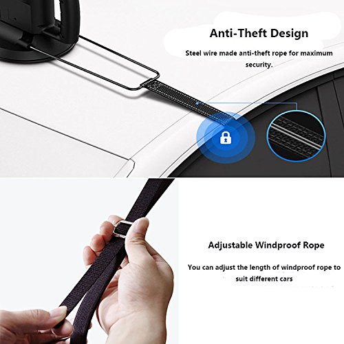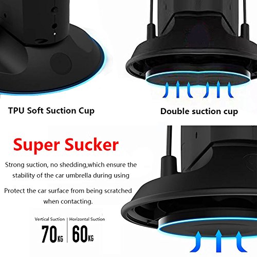 - 【High quality for Maximum Security】Polyester blocking 99% UV light;Fiberglass holders features good toughness, not easy to break;Steel wire made anti-theft rope for maximum security. Use TPU rubber soft suction cups, strong suction, no shedding,which ensure the stability of the car umbrella during using and to avoid damage to paint. (in order to secure, sucker should be kept clean, and do not place in the seams)