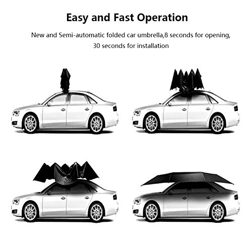 - 【Easy Operation&Portable】New and Semi-automatic folded car umbrella,8 seconds for opening, 30 seconds for installation.34.25in/87cm in length after folded up in a storage bag and 14.3lbs/6.5kg in weight, without any extra burden to your trunk