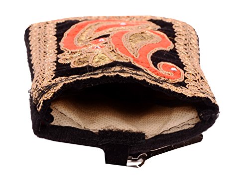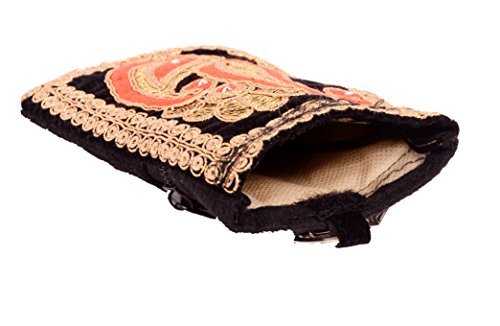 Embroidered iPhone Purse Paouch,Money Bag Paouch with Long Strap,Evening Bag For Women & Girls (Black Color)