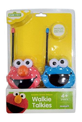 Whether you are trying to keep an eye on your child or your little one is just playing these adorable Sesame Street ELMO and COOKIE MONSTER Walkie Talkies are a perfect choice. Walkie Talkie features flexible safety antenna, volume control, belt clip and on/off switch to save battery life. Uses one 9V Battery for each (not included). These walkie talkies can be used up to 90 feet. 1 9V batteries are required (not included) push-to-talk buttonFeature