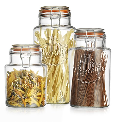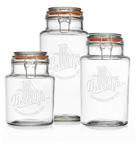 - Quality Canister Set Of 3 Clear Glass Round Jar with Hermetic Seal bail & Trigger Lids for Kitchen - Food Storage Containers.